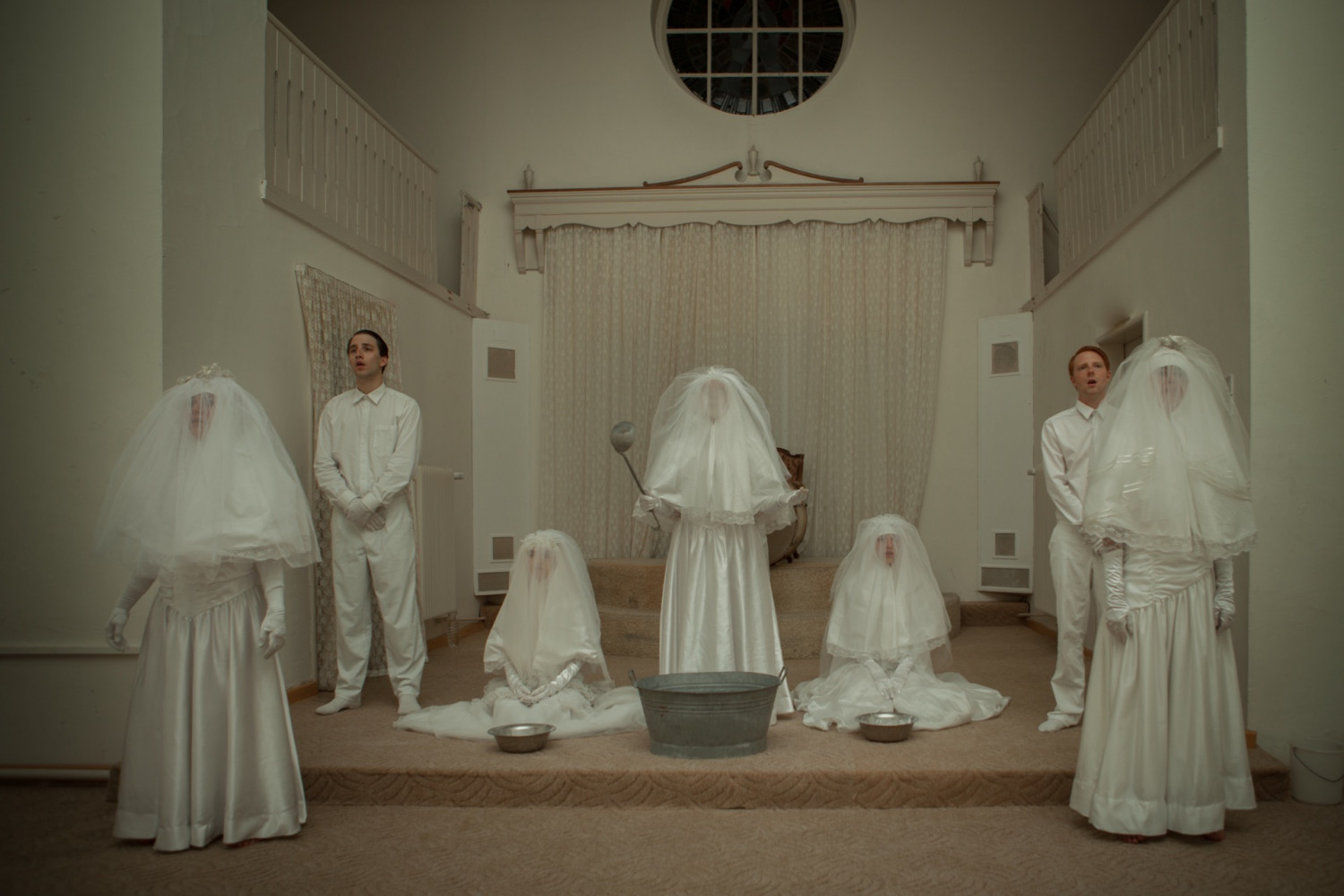 DAS HEUVOLK war meine erste Zusammenarbeit mit der dänisch-österreichischen Performance-Gruppe SIGNA, im NATIONALTHEATER MANNHEIM. Die Figur, die ich spielte, hieß Timotei und trat der Sekte bei, nachdem er die Kontrolle über sein Leben verloren hatte. Da Timoteis Mutter zuvor Mitglied einer religiösen Sekte gewesen war, war eine zentrale Frage in meiner persönlichen Charakterarbeit, wie stark wir von den Verhaltensmustern unserer Eltern beeinflusst werden.
