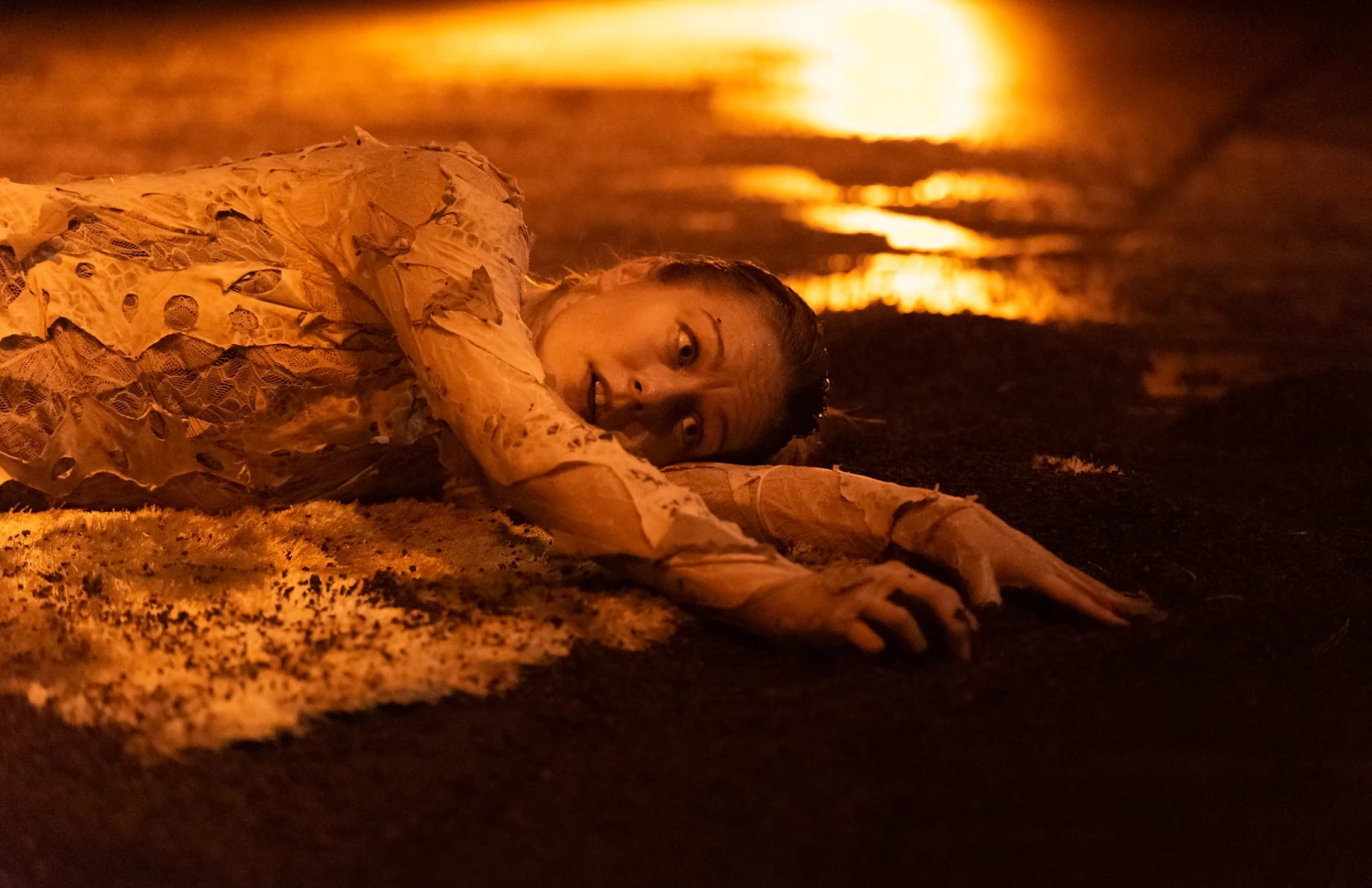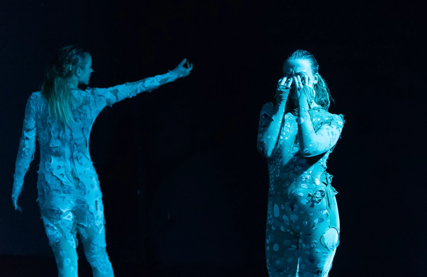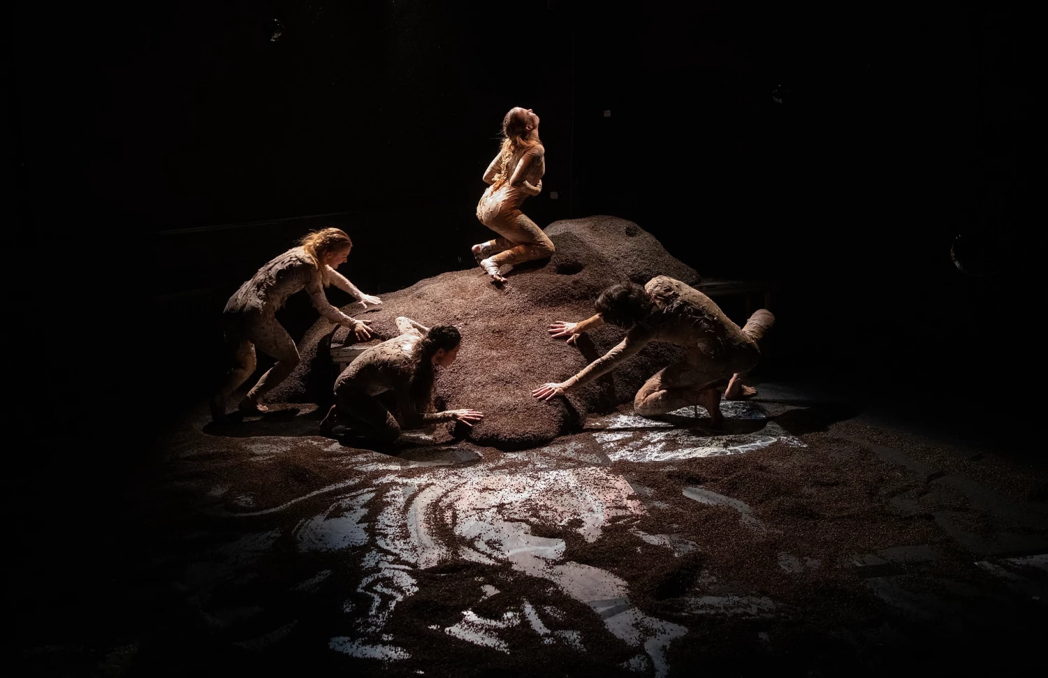Das Zeitalter des Anthropozän ist Vergangenheit, die prophezeite ökologische Krise ist eingetreten. Einige Menschen haben die Katastrophe überlebt. Sie erinnern sich noch an alte Zeichen und Narrative, sind aber in einer Phase des Übergangs und der Verwandlung. Doch sie haben miteinander eine neue Fähigkeit entwickelt: sie können ein nervöses, hochsensibles, emphatisches System herstellen, in dem jede Empfindung, jede Schwingung mit allen anderen im Raum geteilt wird.