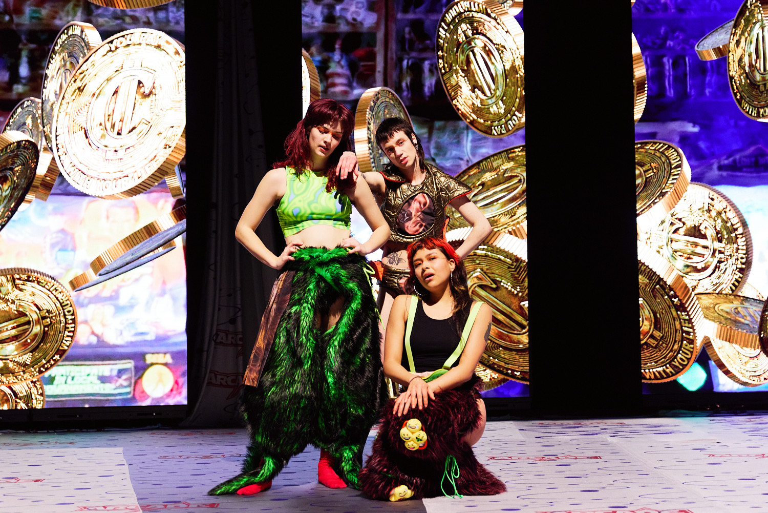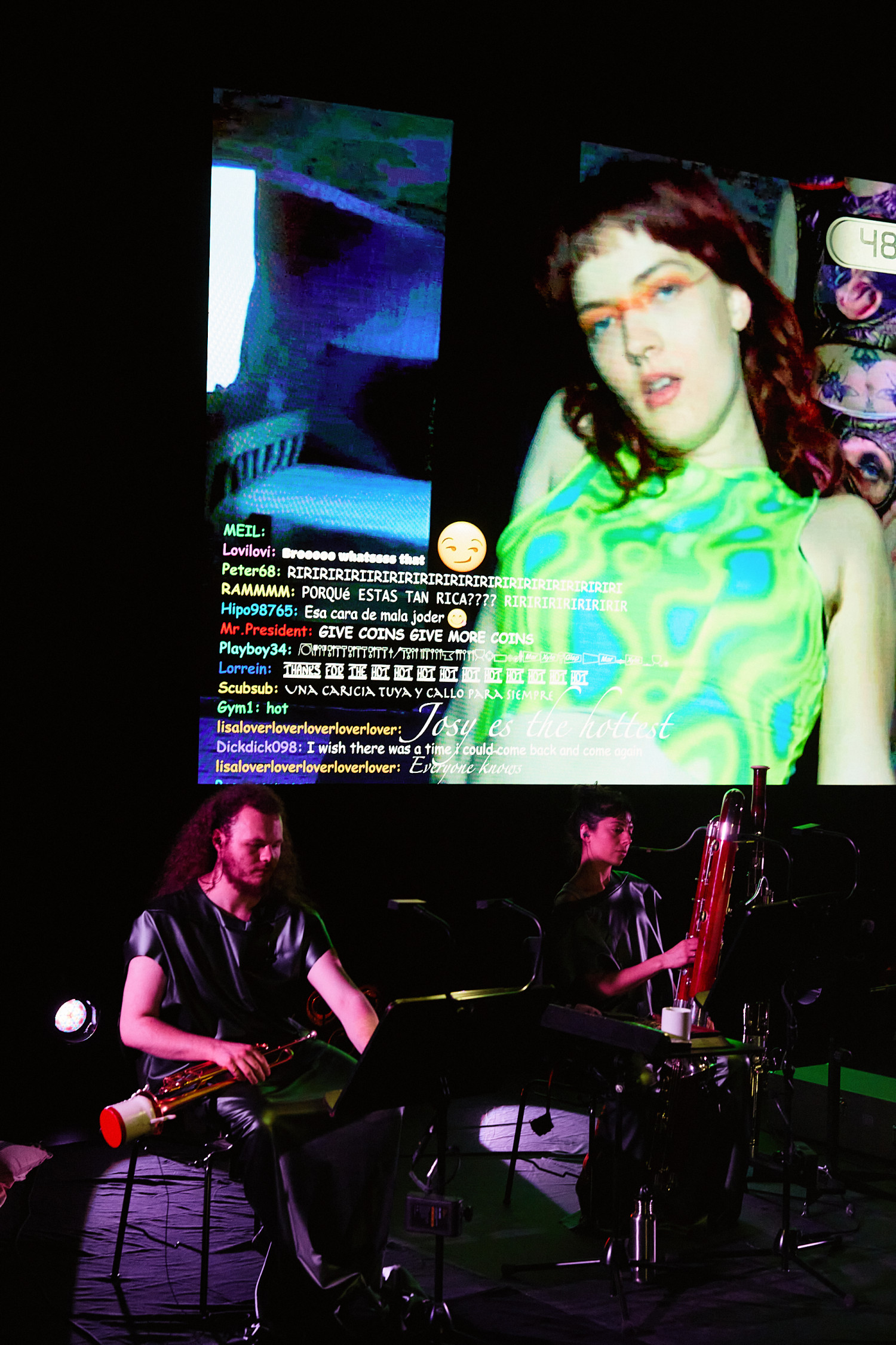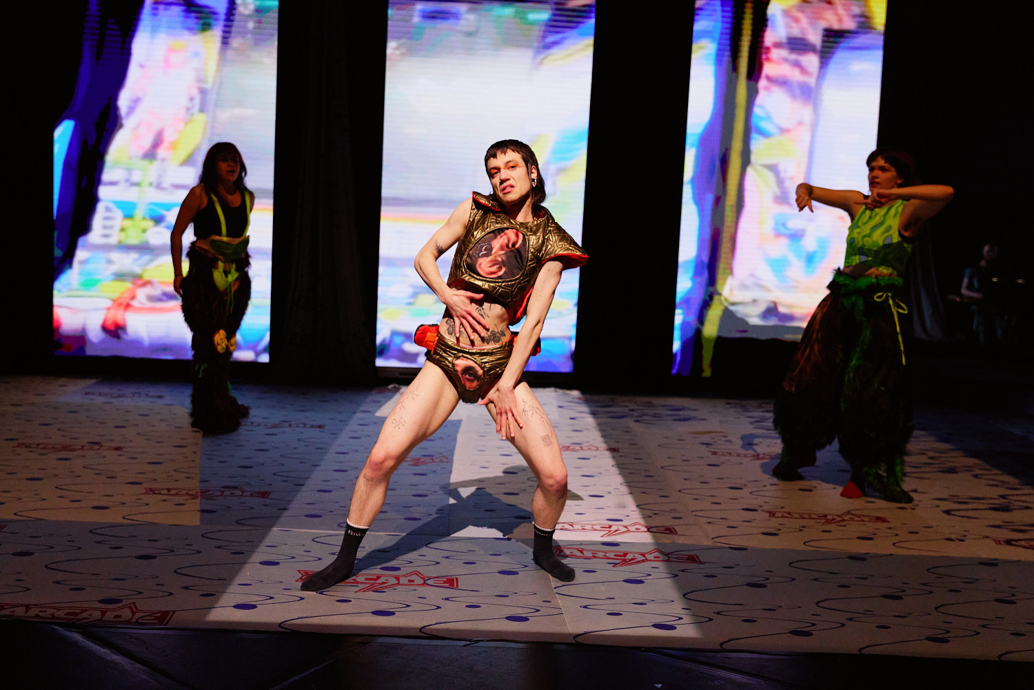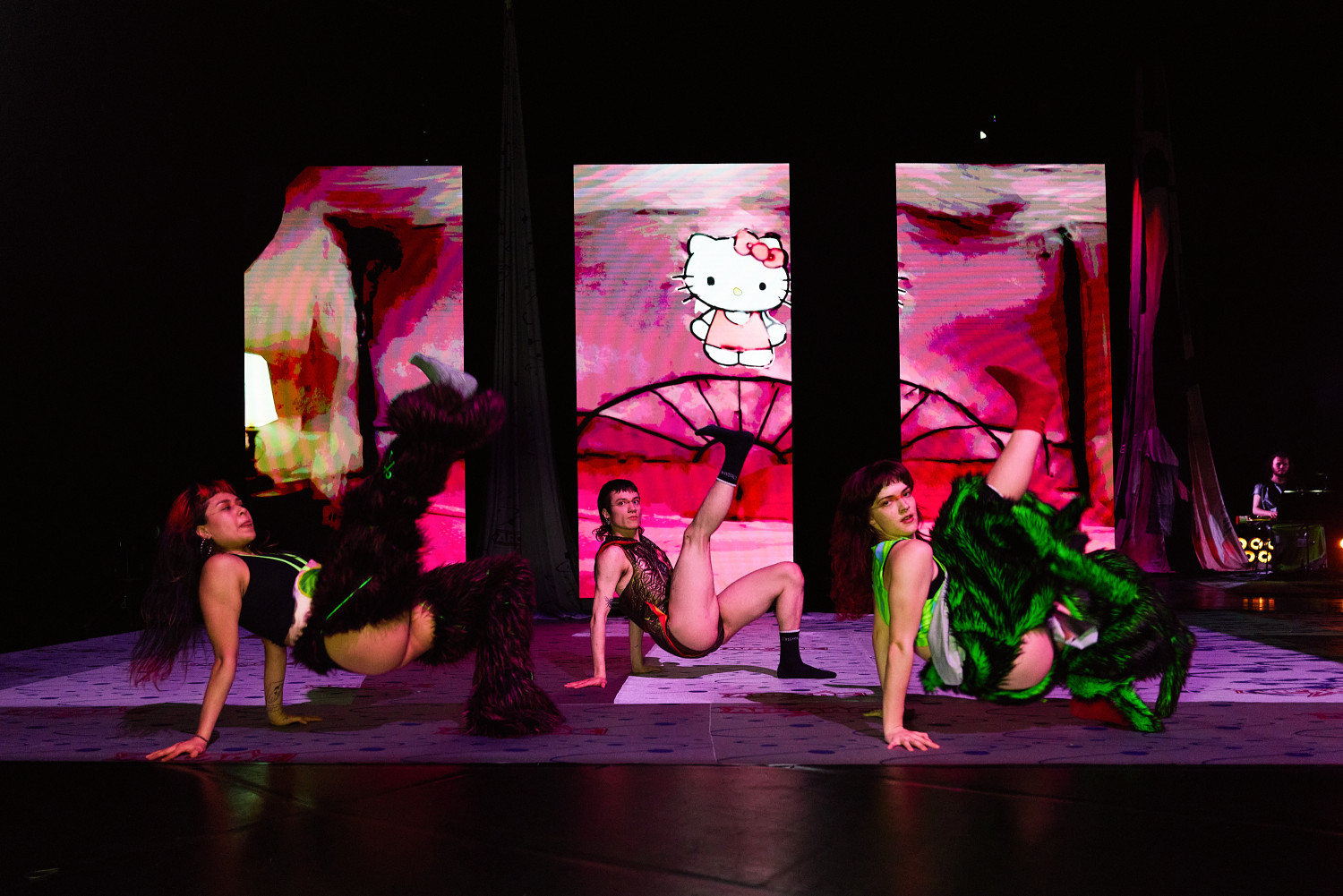 SLOP, oder „Junk“, bezeichnet minderwertige Texte und Bilder, die mit Hilfe generativer künstlicher Intelligenz produziert werden. Für Christopher Ramms Masterarbeit in Multimedia-Komposition an der HFMT Hamburg diente das Konzept von SLOP, das zunehmend die virtuelle Welt verschmutzt, als Metapher für unsere Gesellschaft im Spätkapitalismus. Während techno-utopische Zukunftsvisionen die rücksichtslose Ausbeutung des Planeten rechtfertigen, versinkt der Großteil der Erde in virtuellem und realem Müll. Vor diesem Hintergrund erzählt die Multimedia-Performance die Geschichte einer Tanzkompanie, die sich durch eine sehr nahe Zukunft kämpft. In diesem Kampf ums Überleben und Weitermachen entstehen selbstermächtigende, queere und fürsorgliche Narrative des Transhumanismus und der Zukunft.