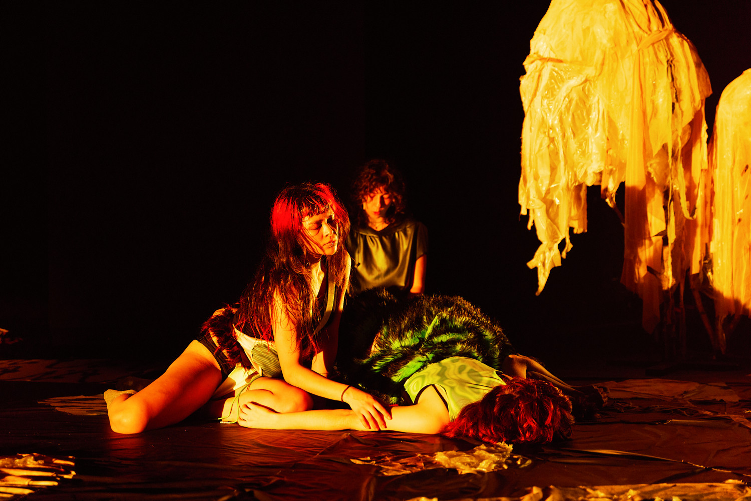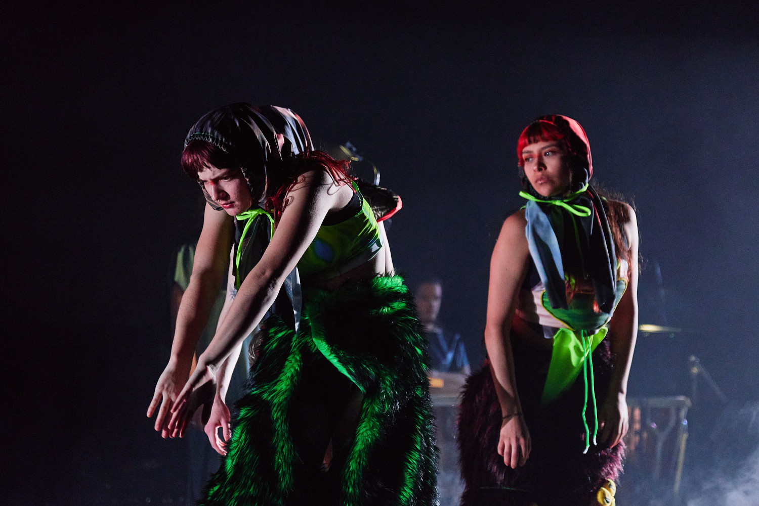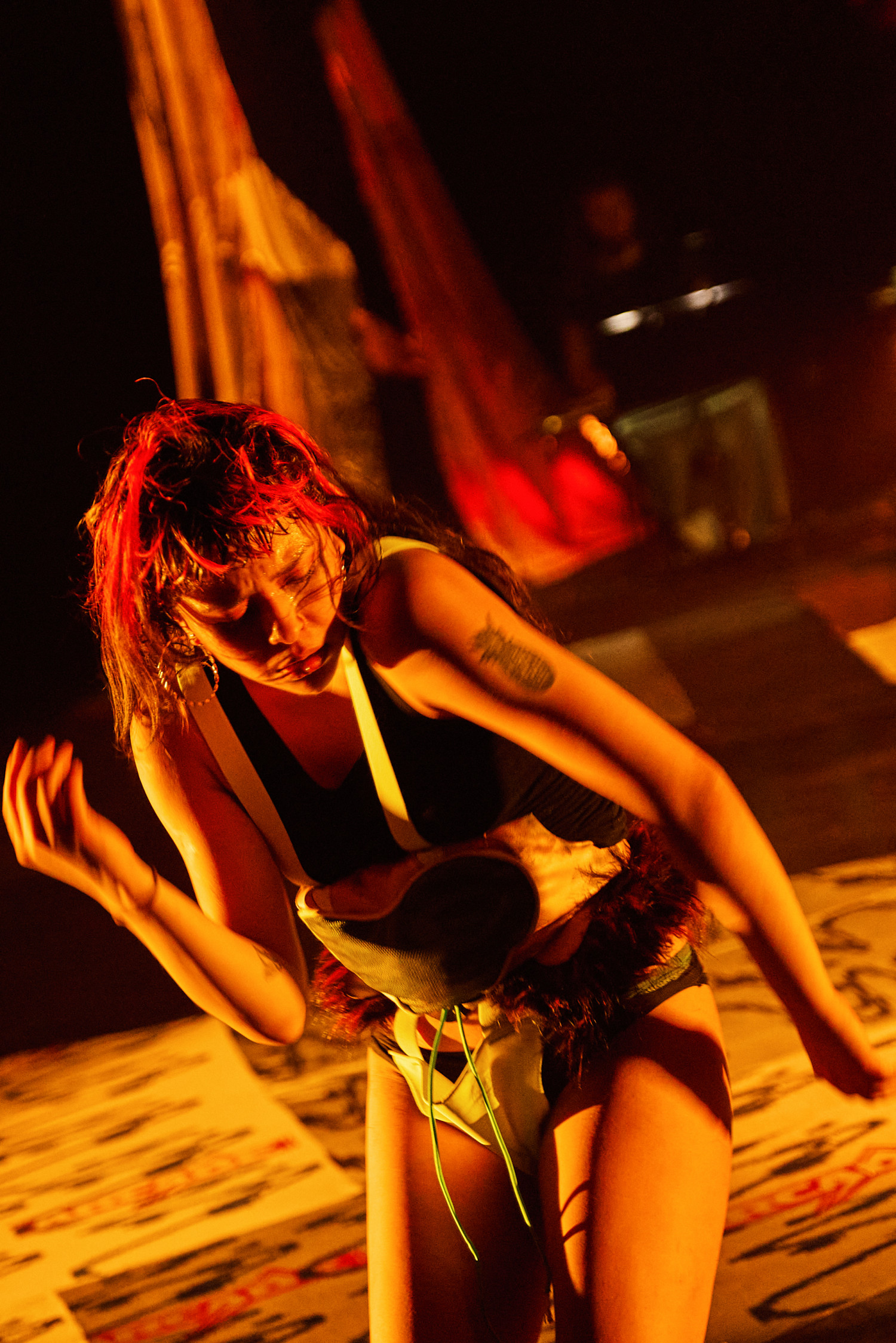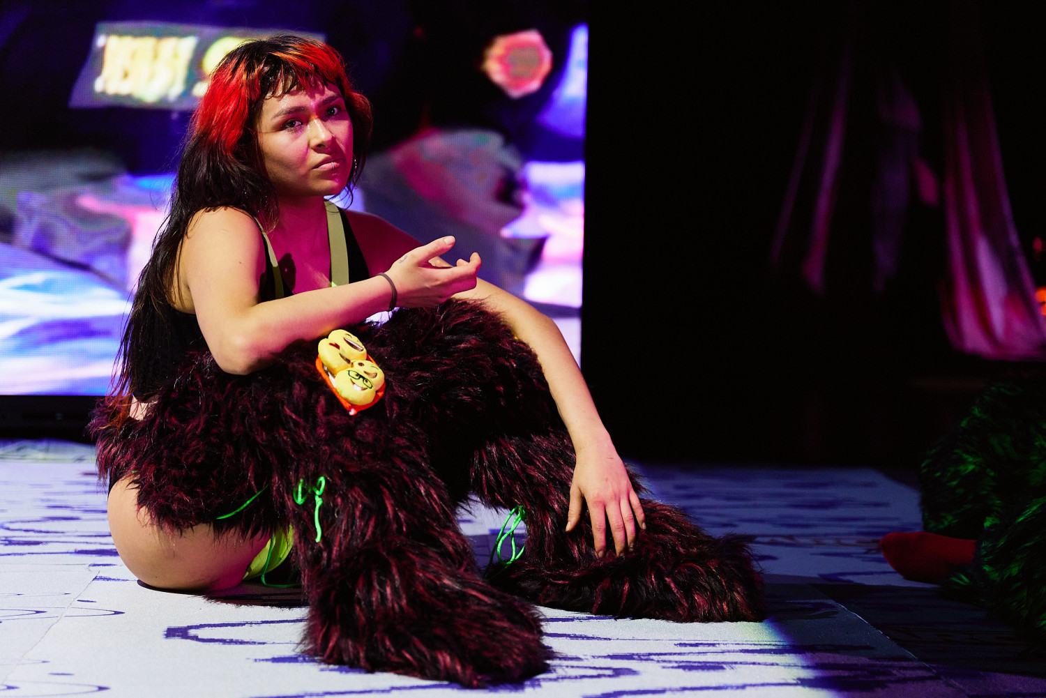 SLOP, oder „Junk“, bezeichnet minderwertige Texte und Bilder, die mit Hilfe generativer künstlicher Intelligenz produziert werden. Für Christopher Ramms Masterarbeit in Multimedia-Komposition an der HFMT Hamburg diente das Konzept von SLOP, das zunehmend die virtuelle Welt verschmutzt, als Metapher für unsere Gesellschaft im Spätkapitalismus. Während techno-utopische Zukunftsvisionen die rücksichtslose Ausbeutung des Planeten rechtfertigen, versinkt der Großteil der Erde in virtuellem und realem Müll. Vor diesem Hintergrund erzählt die Multimedia-Performance die Geschichte einer Tanzkompanie, die sich durch eine sehr nahe Zukunft kämpft. In diesem Kampf ums Überleben und Weitermachen entstehen selbstermächtigende, queere und fürsorgliche Narrative des Transhumanismus und der Zukunft.